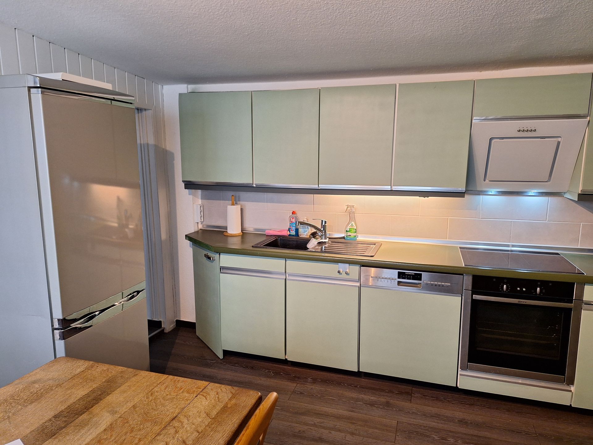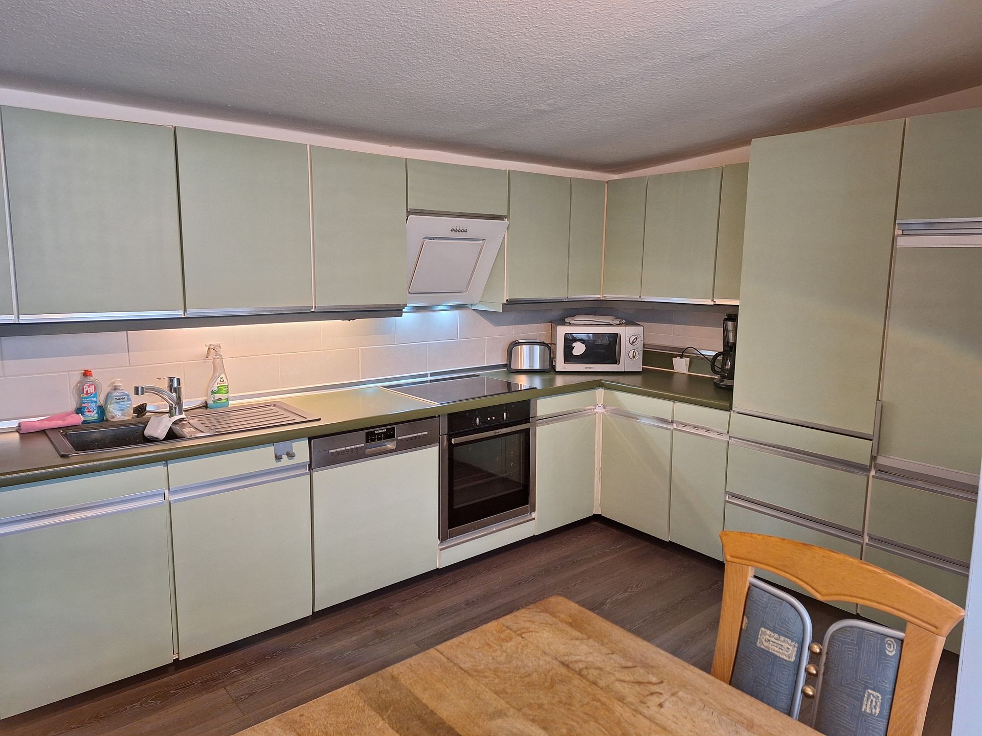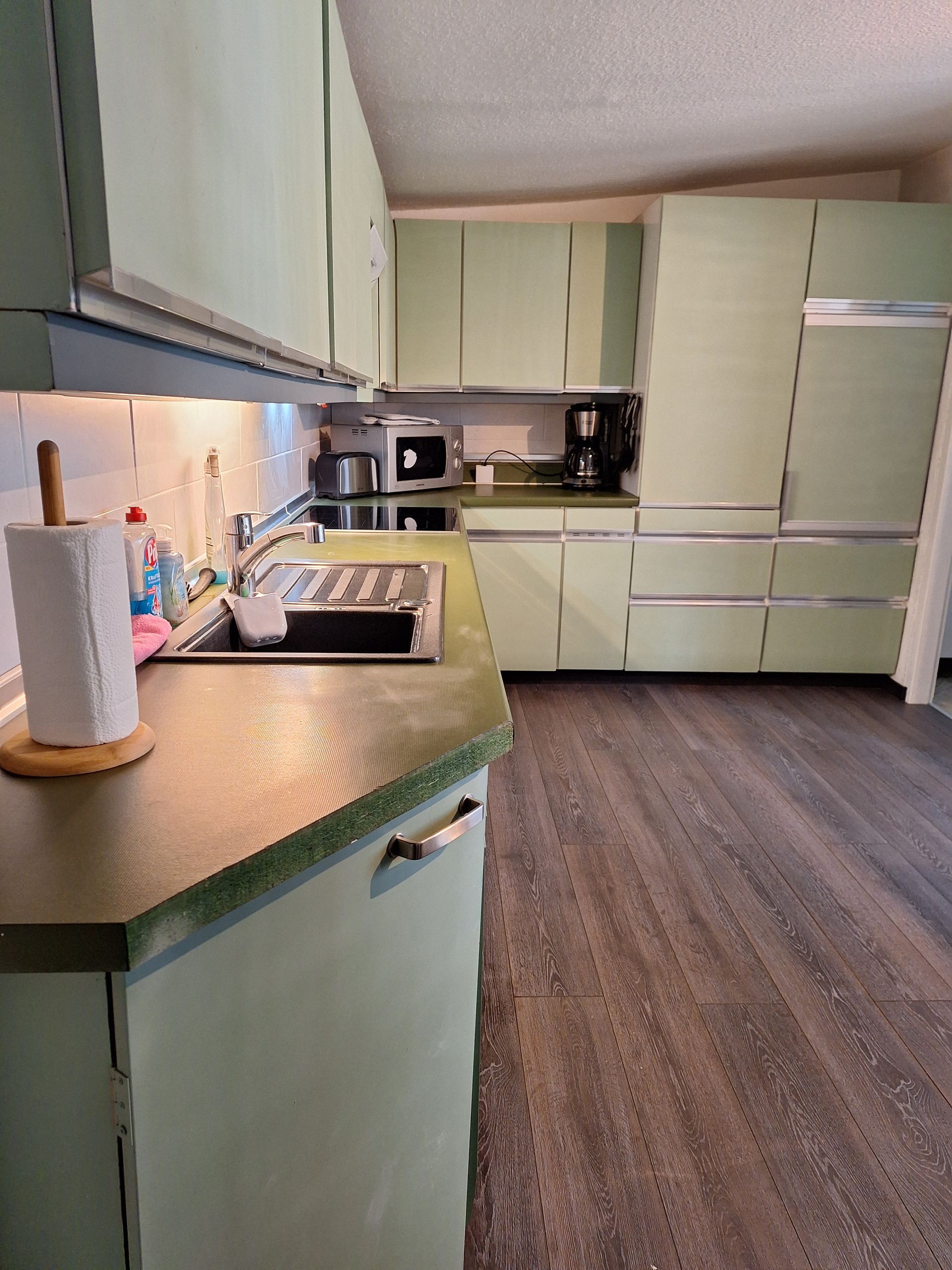 - Küche mit Herd, Kühl-Gefrier-Kombi, Backofen, Mikrowelle,