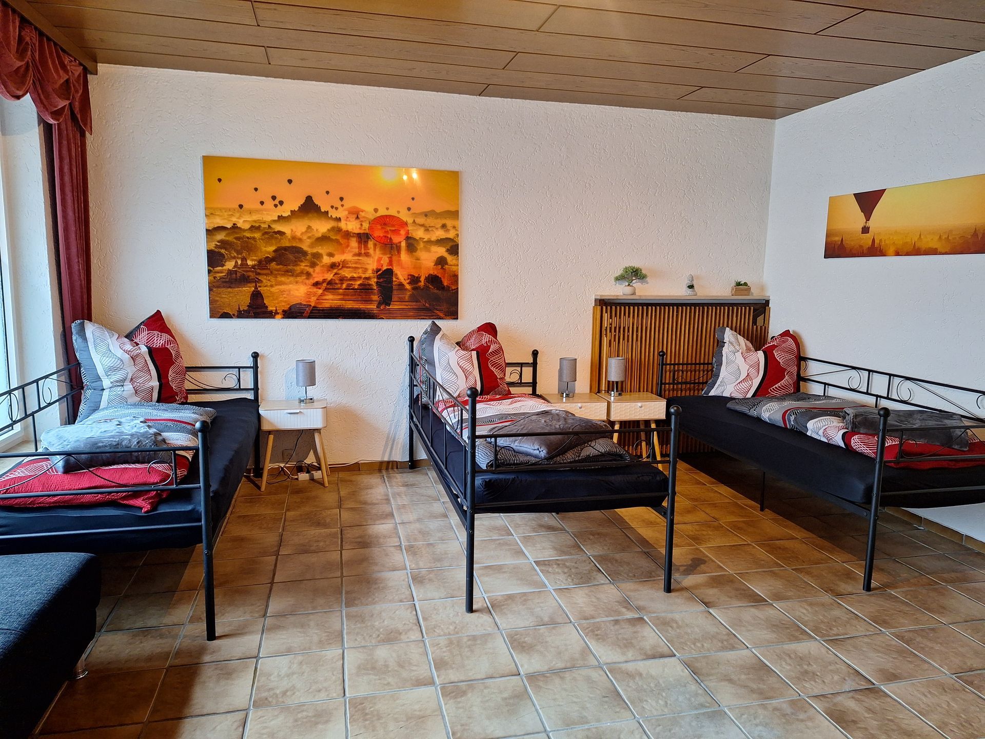 - Wohnzimmer und 3 Schlafzimmer (ein Einzelzimmer, ein 4-Bett-Zimmer und ein 3-Bett-Zimmer)